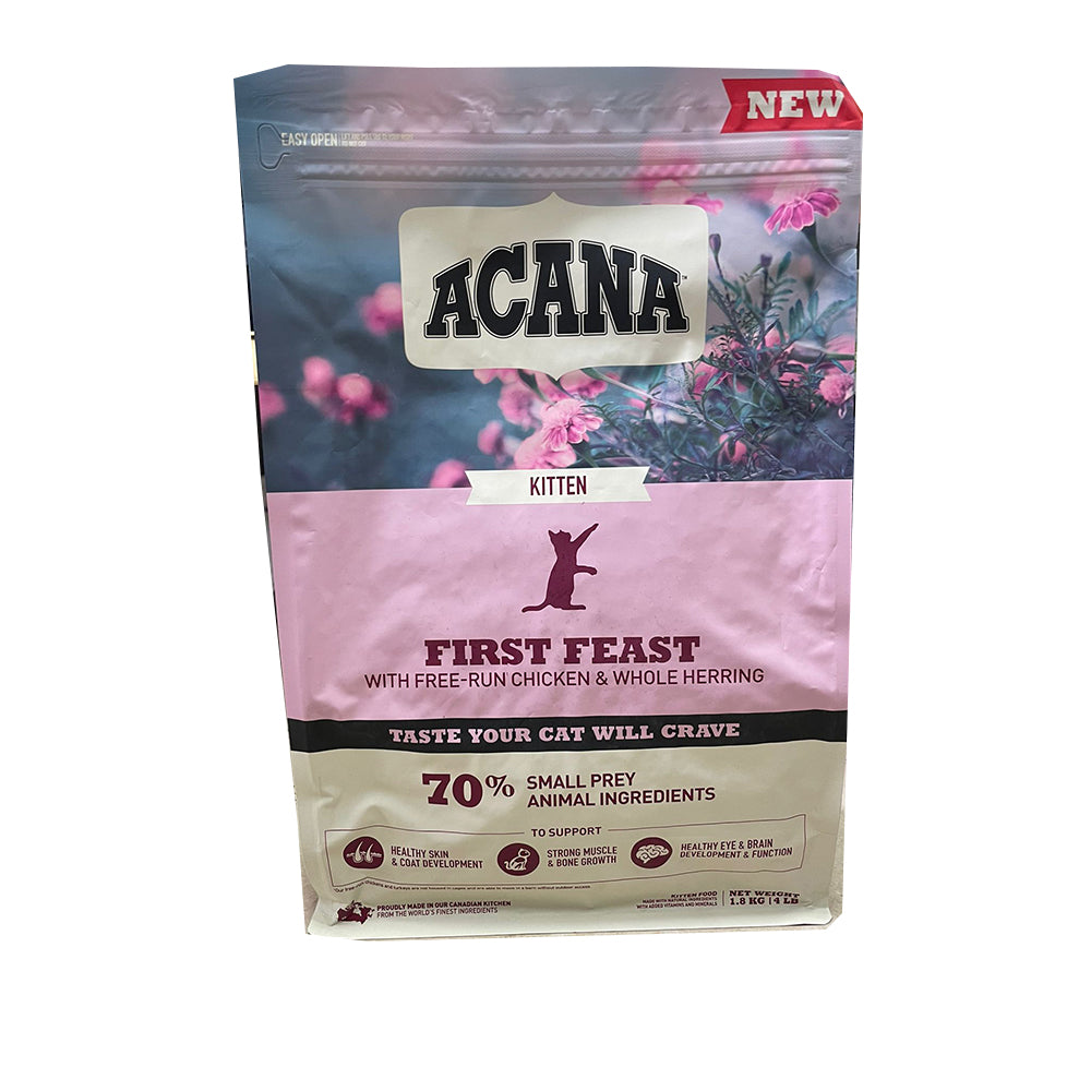 עוף טרי (18%), בשר עוף מיובש (13%), דג הרינג מיובש (13%), שיבולת שועל מלאה, אפונה, שומן עוף (7%), עדשים ירוקות, בשר הודו מיובש (5%), חומוס, עדשים אדומות, דג הרינג טרי (4%), ביצים טריות (4%), שמן דגי זהבנון (2%), סיבי עדשים, שליו טרי (1%), חלקי פנים טריים של עוף (כבד, לבבות) (1%), חלקי פנים טריים של הודו (כבד, לבבות) (1%), סחוס עוף (1%), אצות מיובשות, דלורית טריה, דלעת טריה, חמוציות טריות, אוכמניות טריות, ויטמינים, מינרלים, L-קרניטין, DL-מתיונין, טאורין, חיידקים פרוביוטיים, תערובת טוקופרולים.